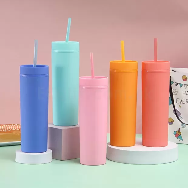 8657 - 純色直身雙層塑料杯