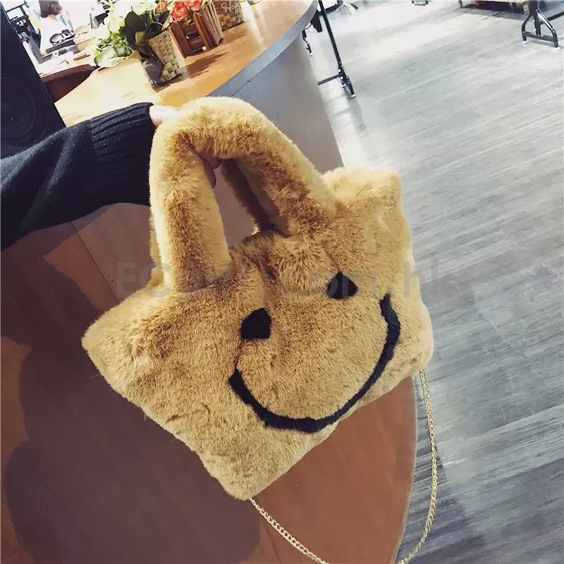 9539 - 毛絨笑臉單肩斜跨手提包