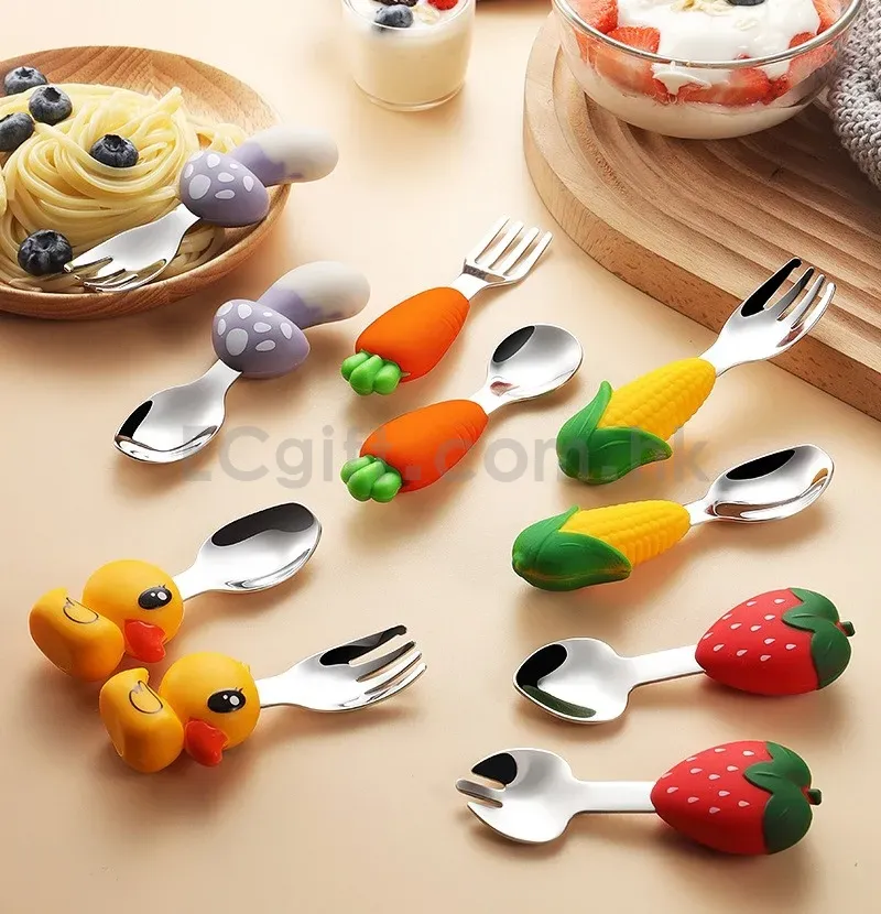 11775 - 硅膠不鏽鋼卡通兒童餐具